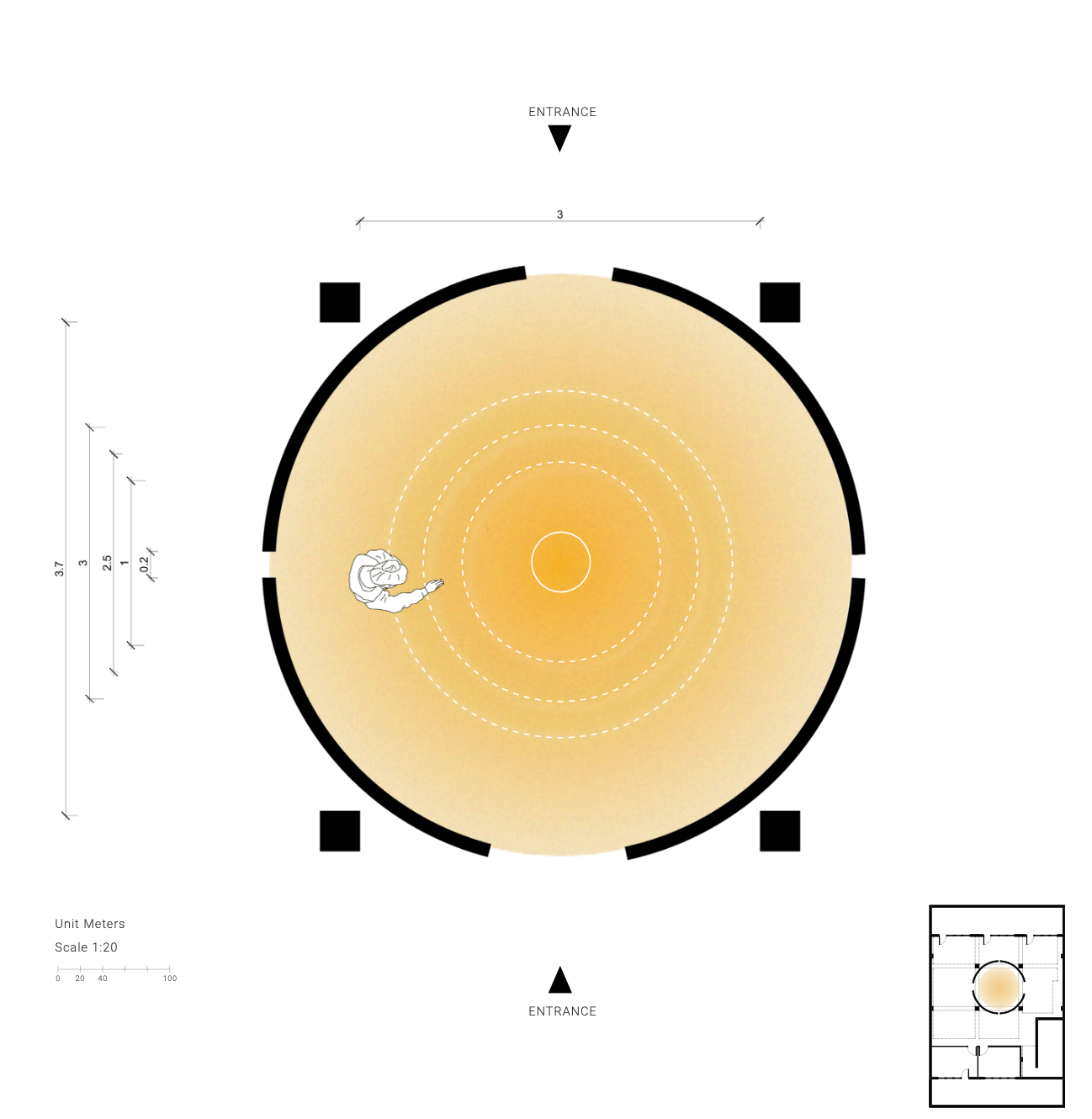 We placed the experience in the center of the space, reflecting how we as humans hold our inner world at the core.
