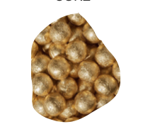 Gold metallic fringe is placed in circular layers to create reflection and invite exploring.