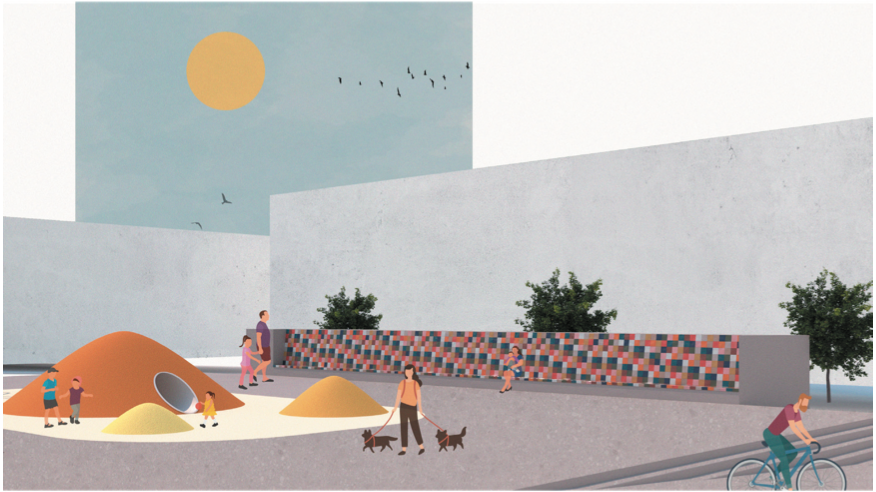 We opened up the plaza with a better flow and placed the playground at the center, creating a more inviting and interactive space for everyone.